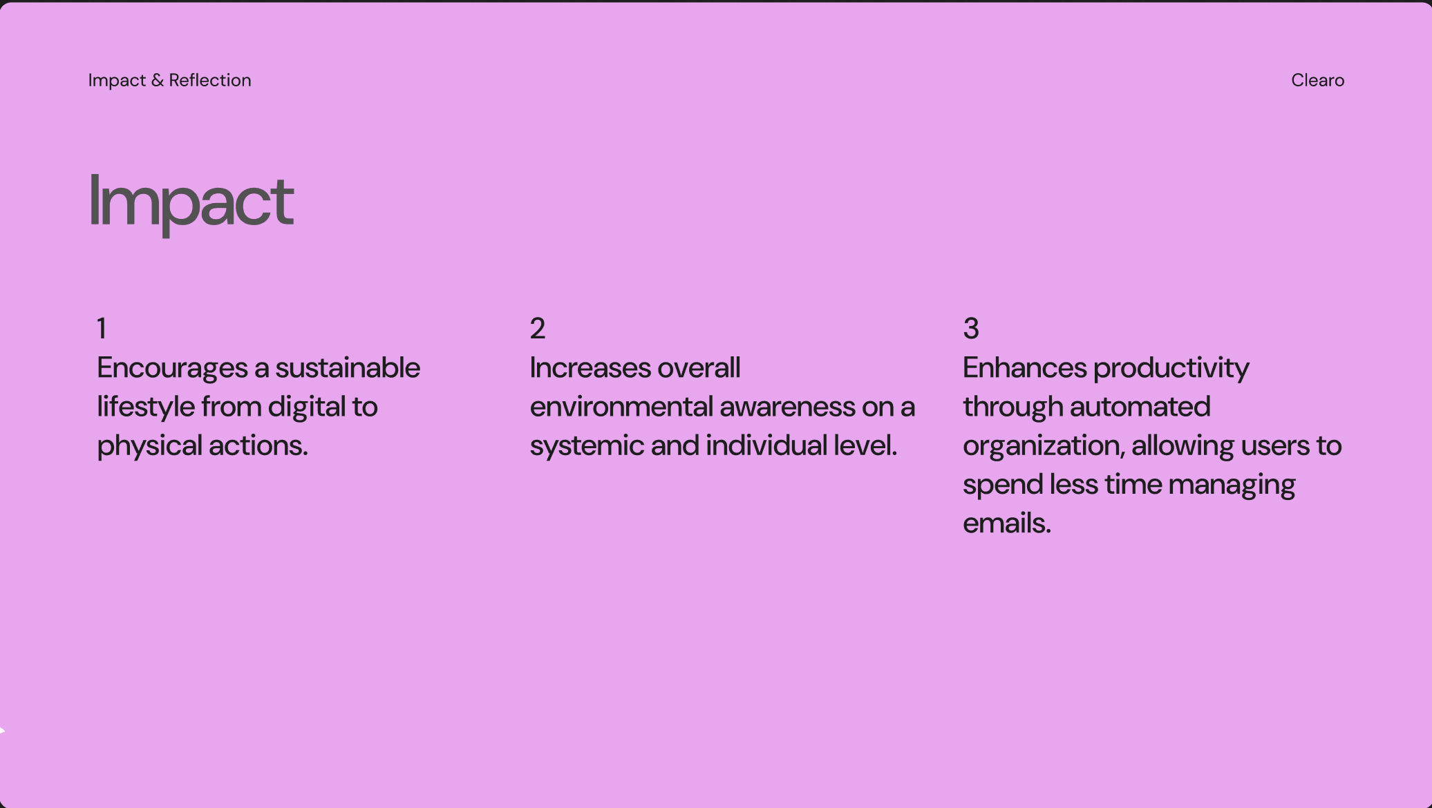 Clearo showed me how small digital decisions can accumulate into real environmental impact, and how design can make that visible.