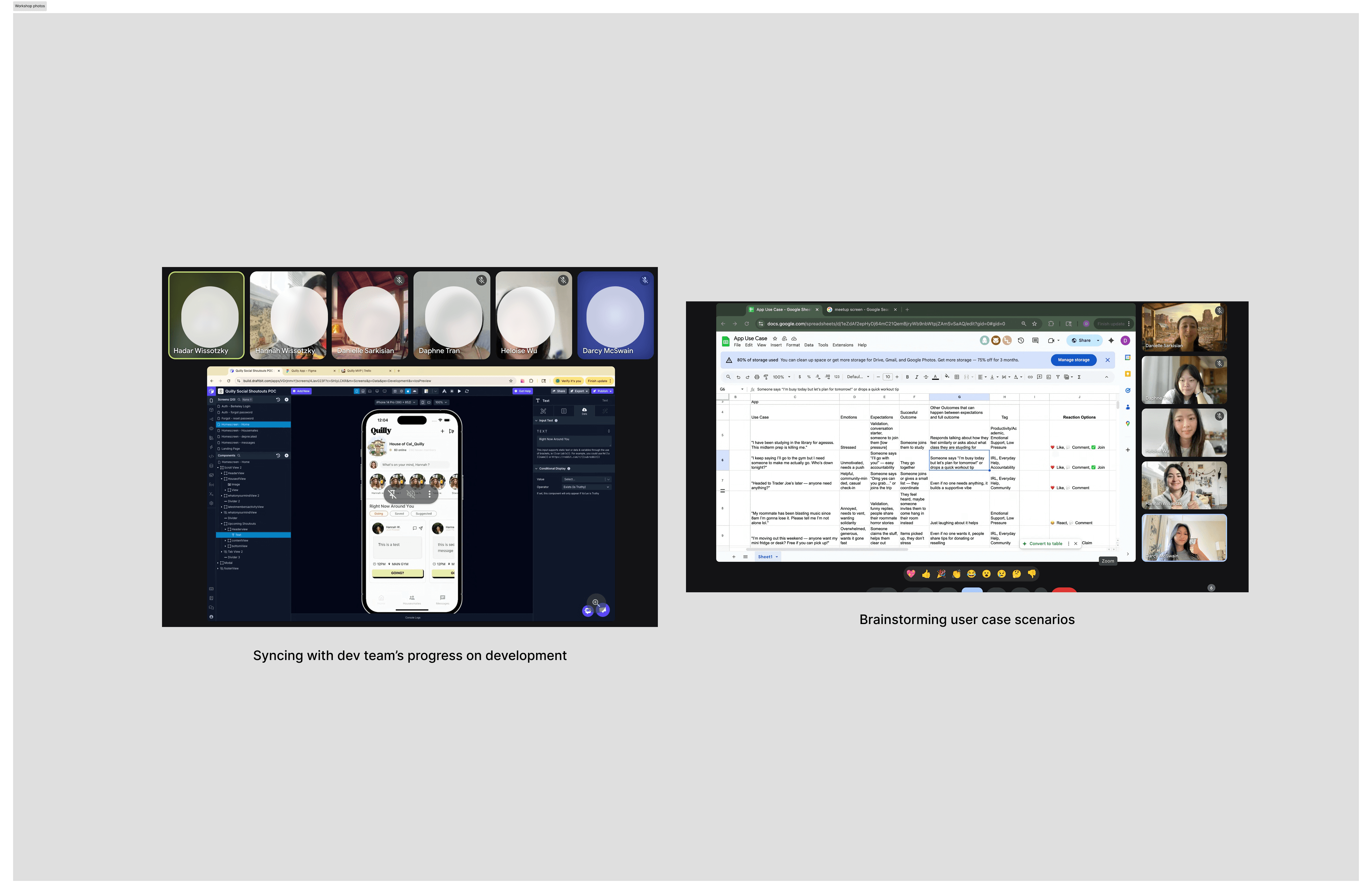 Danielle (PM), Darcy (Designer), Daphne (Designer), Hannah (Founder), Dev Team