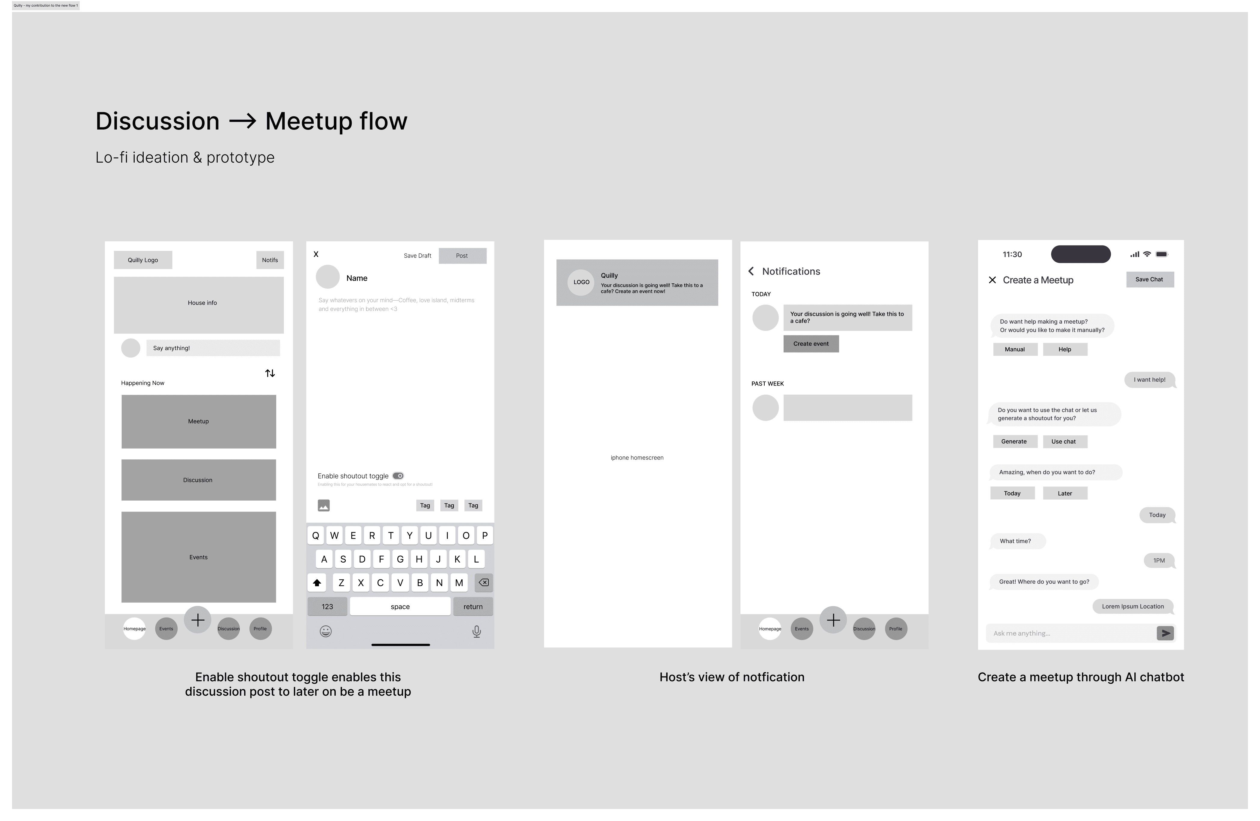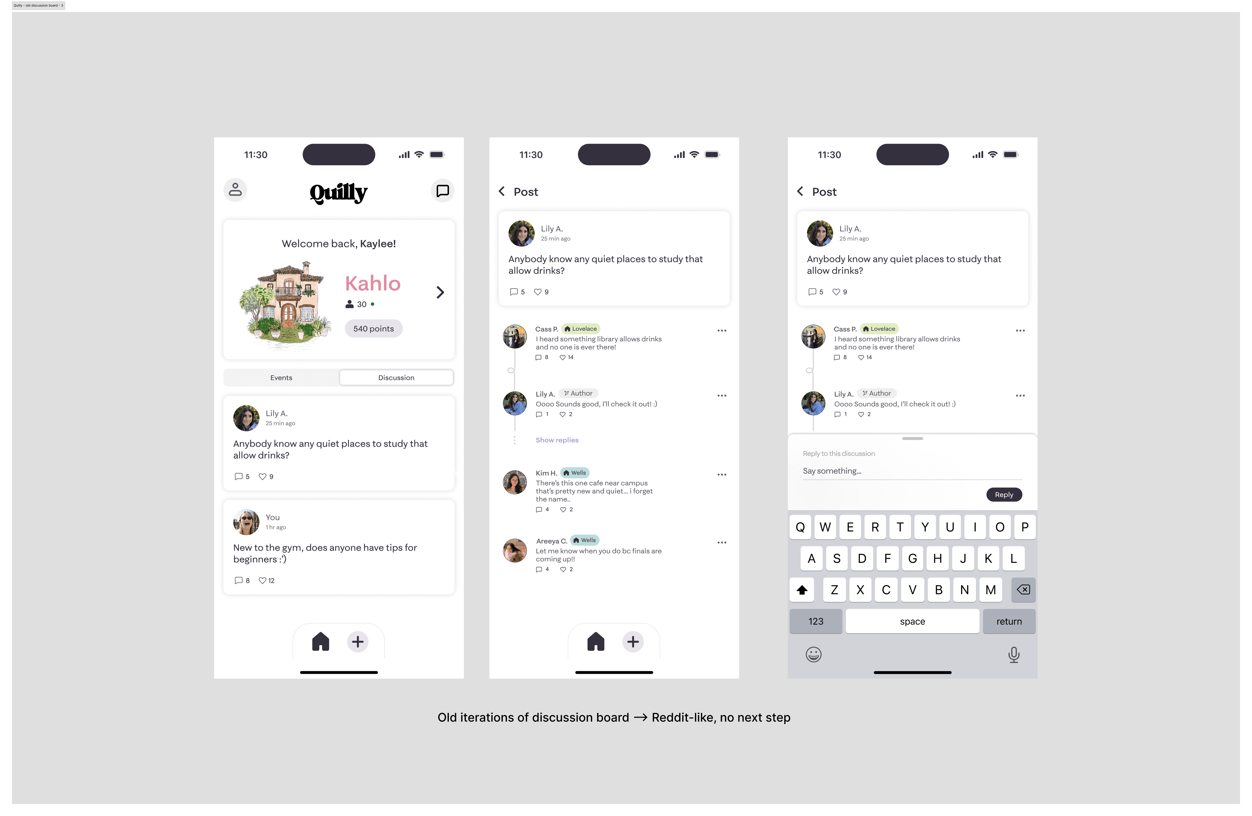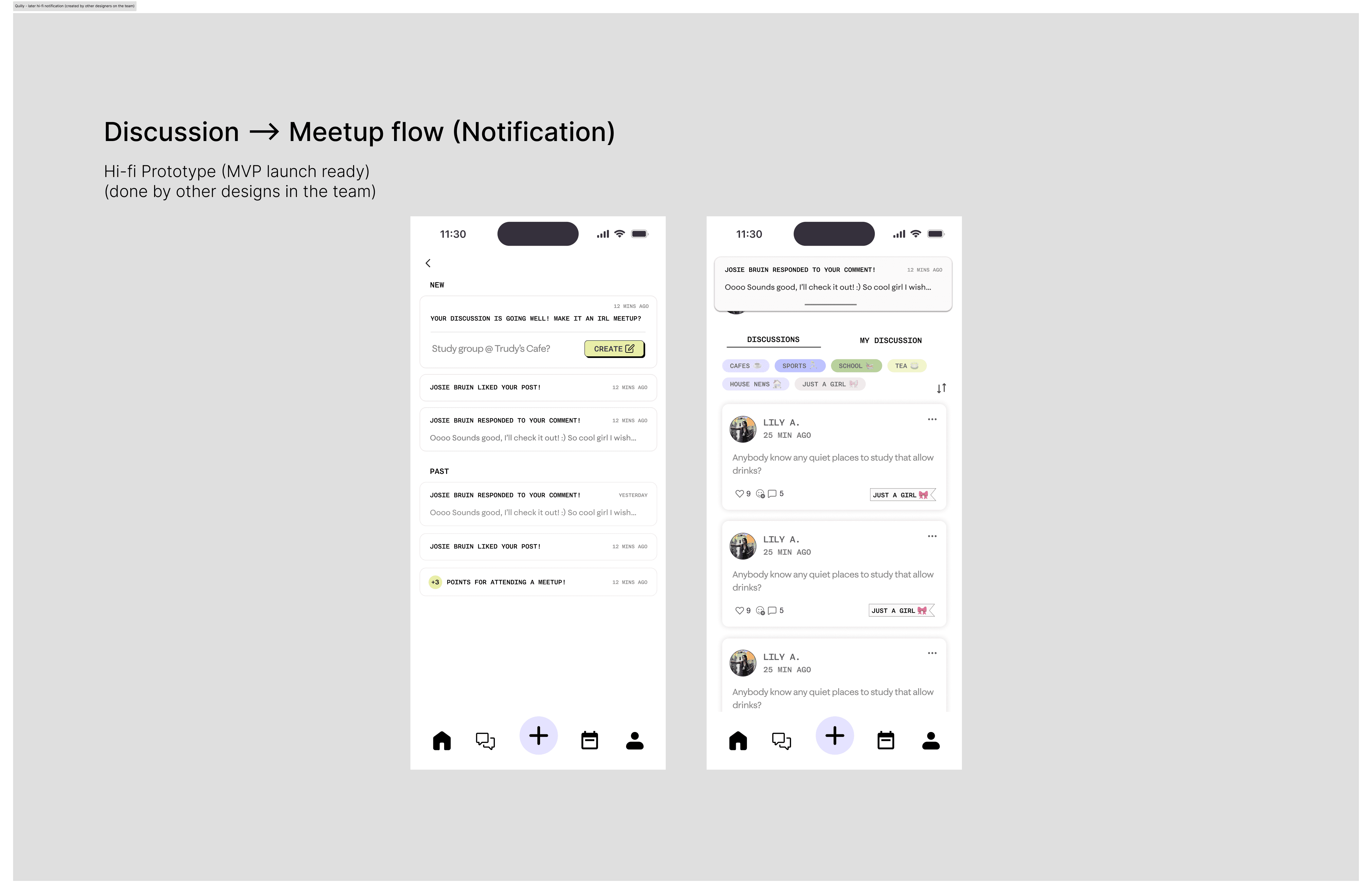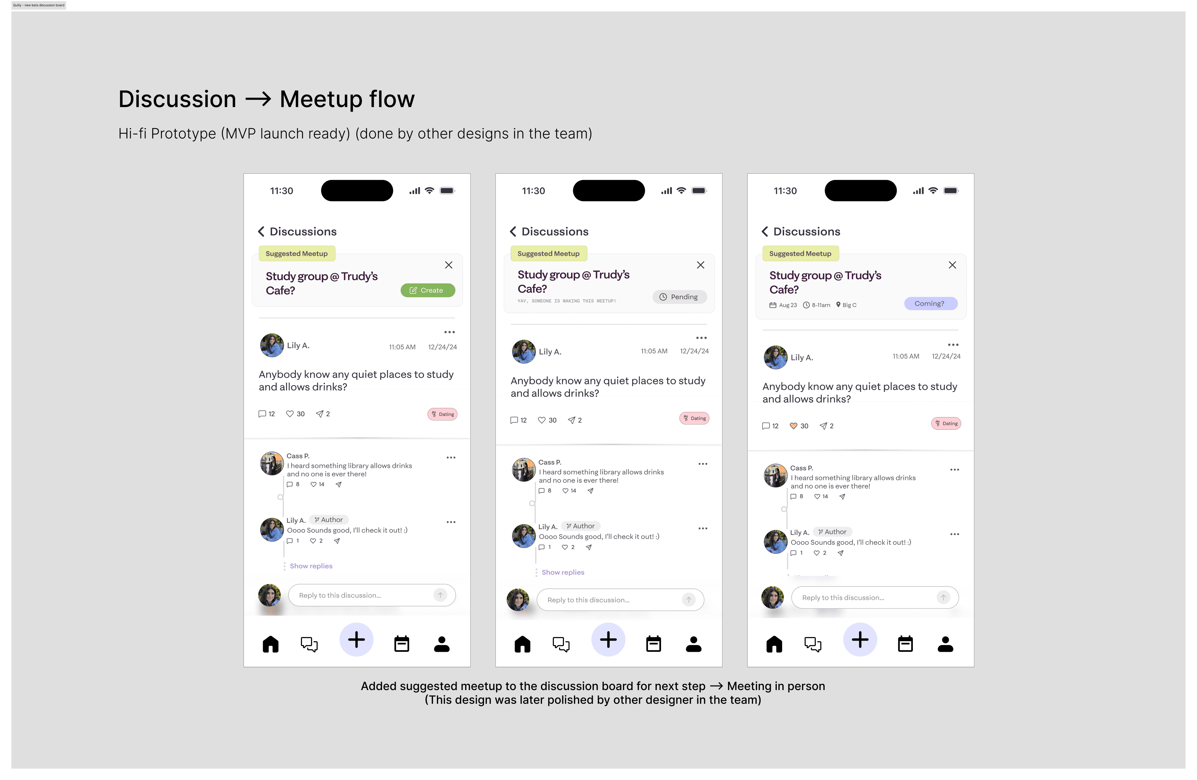 The original Discussions feature was not aligned with Quilly’s mission. It encouraged passive engagement, with conversations that lacked direction and no clear path toward in-person connection.