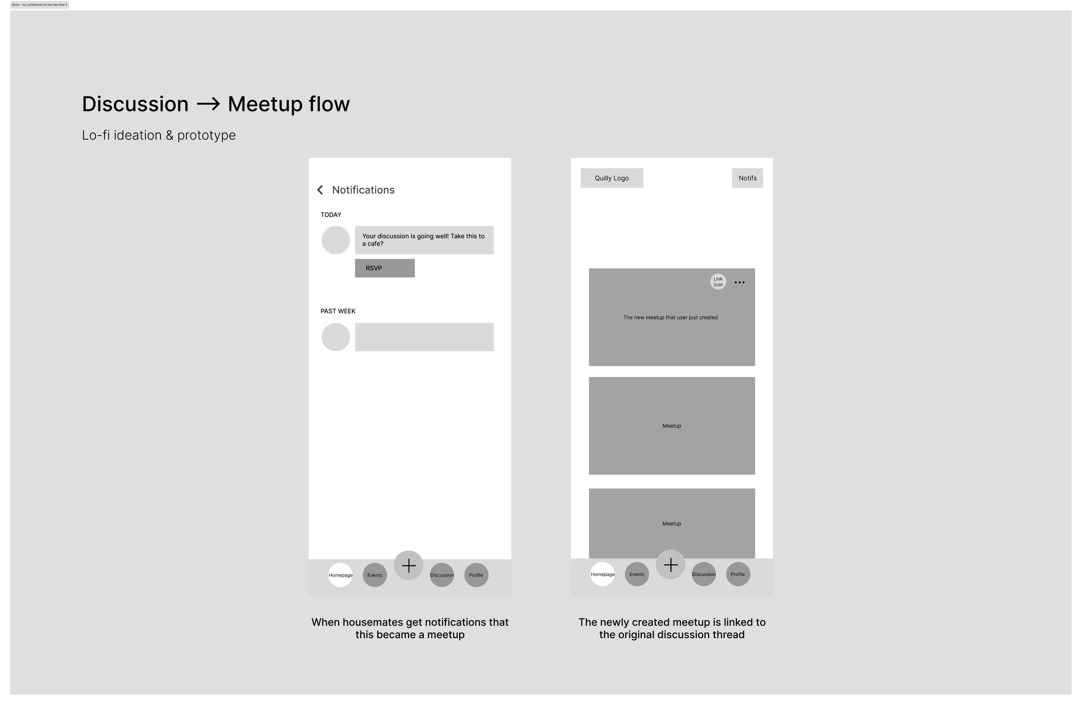 This raised an important question: How might we design the 'discussion' feature to naturally lead users toward in-person meetups?